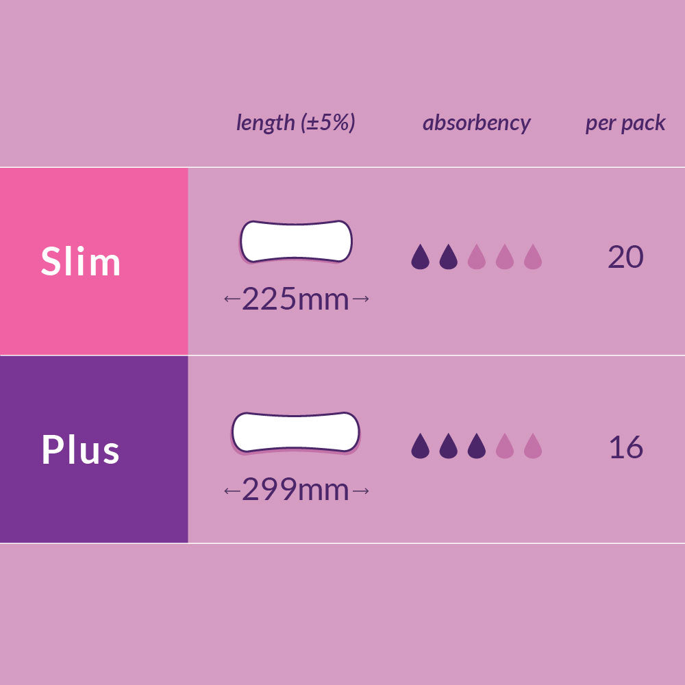 Natracare Dry & Light incontinence pads are designed for light bladder weakness.